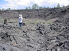 A hiker explores a lava amphitheater at Lava Falls.