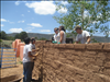 YCC dissembling leaning adobe wall down to foundation and rebuilding plumb at Trading Post, Pecos National Historical Park.