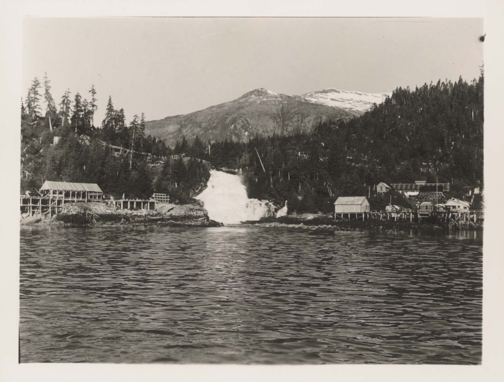 Falls at Baranof village. Negative #: 10679. Locality: Juneau. Location of Negative: Wildlife Division, Director’s Office. [This information comes the reverse of the envelope for this negative #].