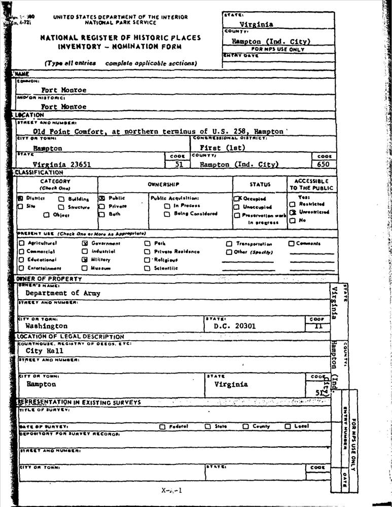 Hampton (Independent City) ; Old Point Comfort
