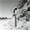 Left Turn Ahead' sign in Kolob Canyon. ; ZION Museum and Archives Image 007.01.01-72of73 ; ZION 15933