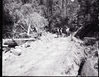 Dirt road from Potato Hollow to Kolob Creek with a small green fir tree uprooted and pushed off road. ; ZION Museum and Archives Image 101_02_003 ; ZION 8291