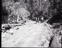 Dirt road from Potato Hollow to Kolob Creek with 3-4 feet of dirt pushed into dry stream course. ; ZION Museum and Archives Image 101_02_004 ; ZION 8292