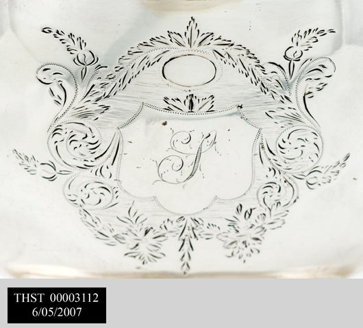 Coffee pot, silver, wooden handle, part of a service, Stone family collection