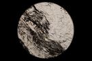 Circular microscopic image of rock structure.
