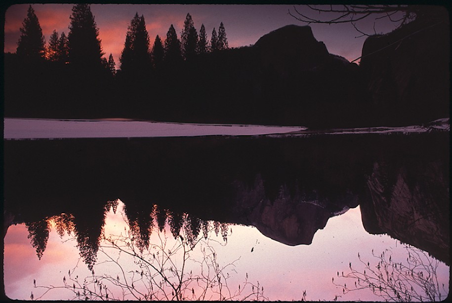 [Half Dome reflection at sunset- winter], John Poimiroo Jan 90 YPCC