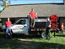 (left to right) Stonewall Fire Chief Bradley Nielson, Lieutenant James Nielson, his son Dillon, and National Historical Park Ranger Drew Gilmour with the new Stonewall VFD slip-on unit