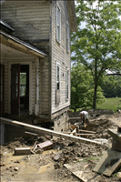 Maintenance employees work on the foundation of the Martin House, one project in CVNP's Historic Structures Rehabilitation Program. || From 2006-2007 the Martin House was rehabilitated as part of CVNP's Historic Structures Program. This property will likely be leased as a Countryside Initiative farm. CVNP enters into agreements with sustainable farmers in order to preserve the rural heritage of the Cuyahoga Valley.