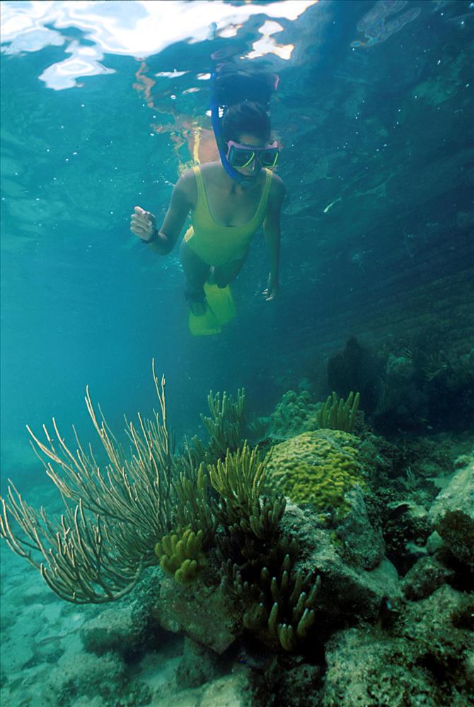 A. Askins snorkeling near moat wall area of Fort Jefferson, Florida in 1993