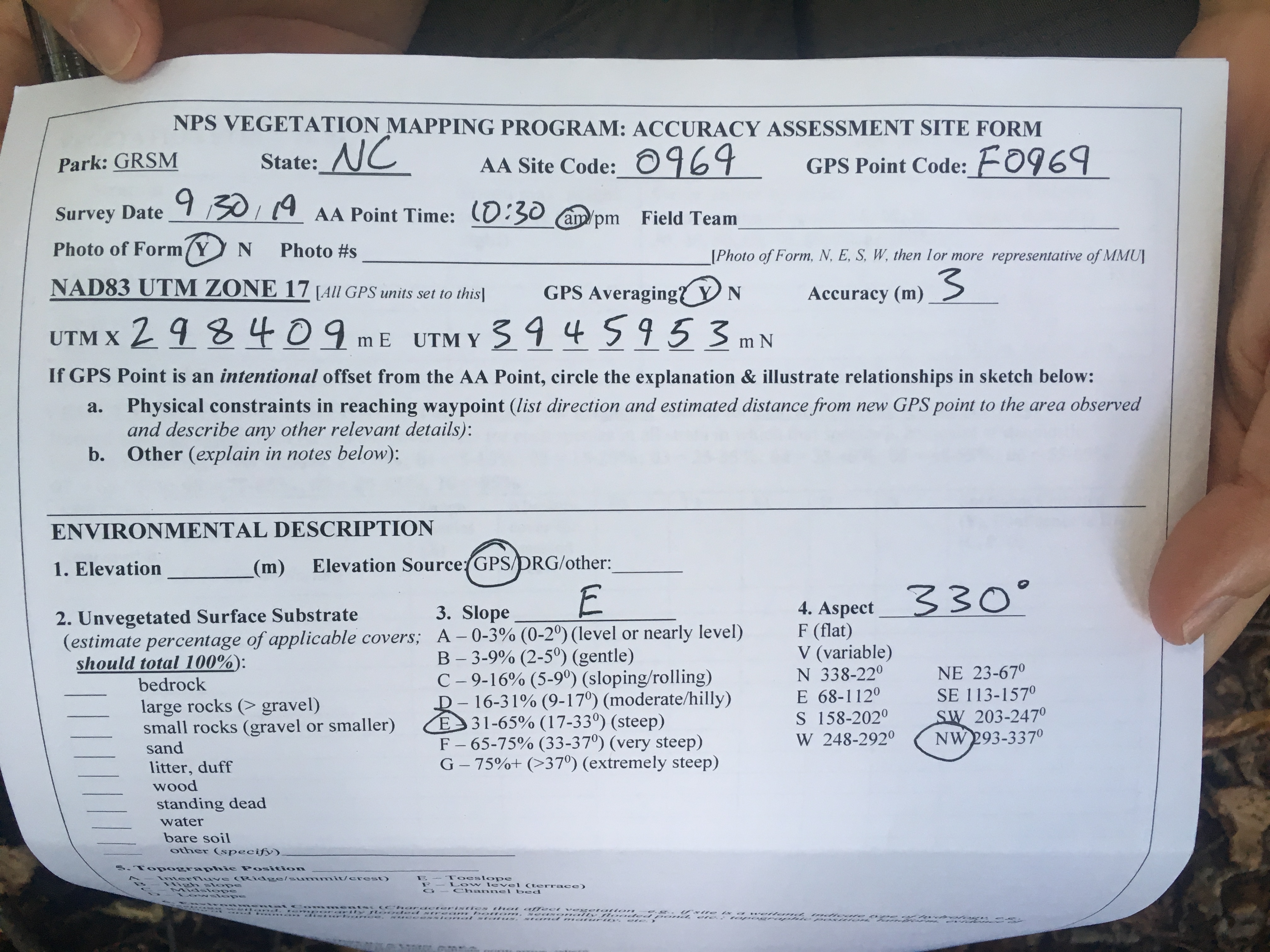 GRSM Accuracy Assessment. Plot Code: GRSM_AA_0969_1