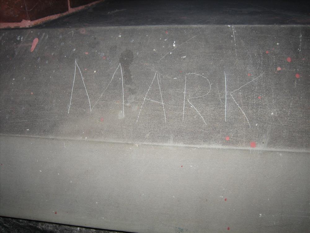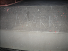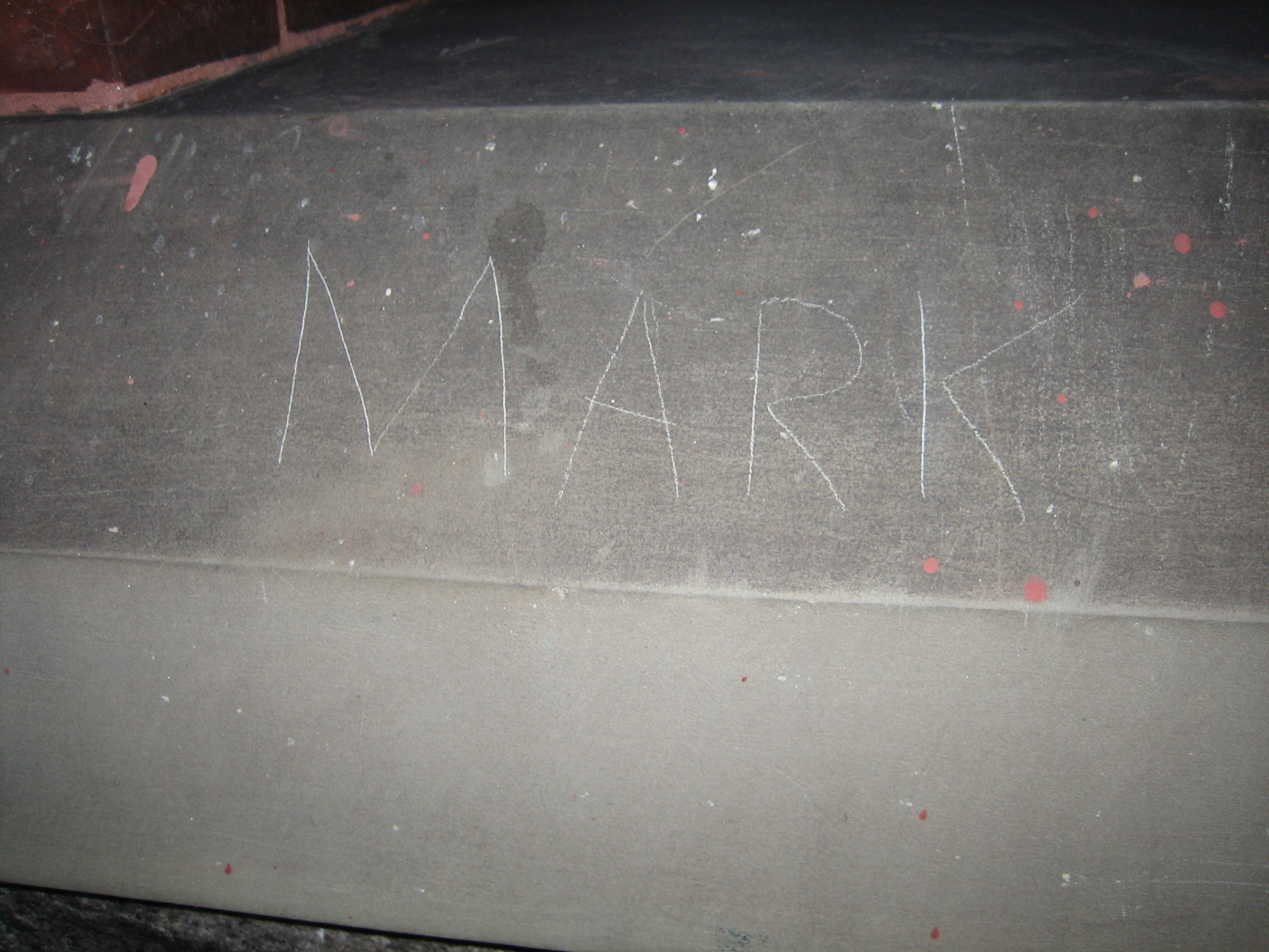 image of vandalism scratched into surface of slate trim at entrance to Glenmont -