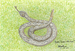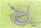 Colored pencil drawing of an Eastern Diamondback Rattlesnake in the grass. The snake is coiled on itself with its rattle in the air and tongue sticking out.