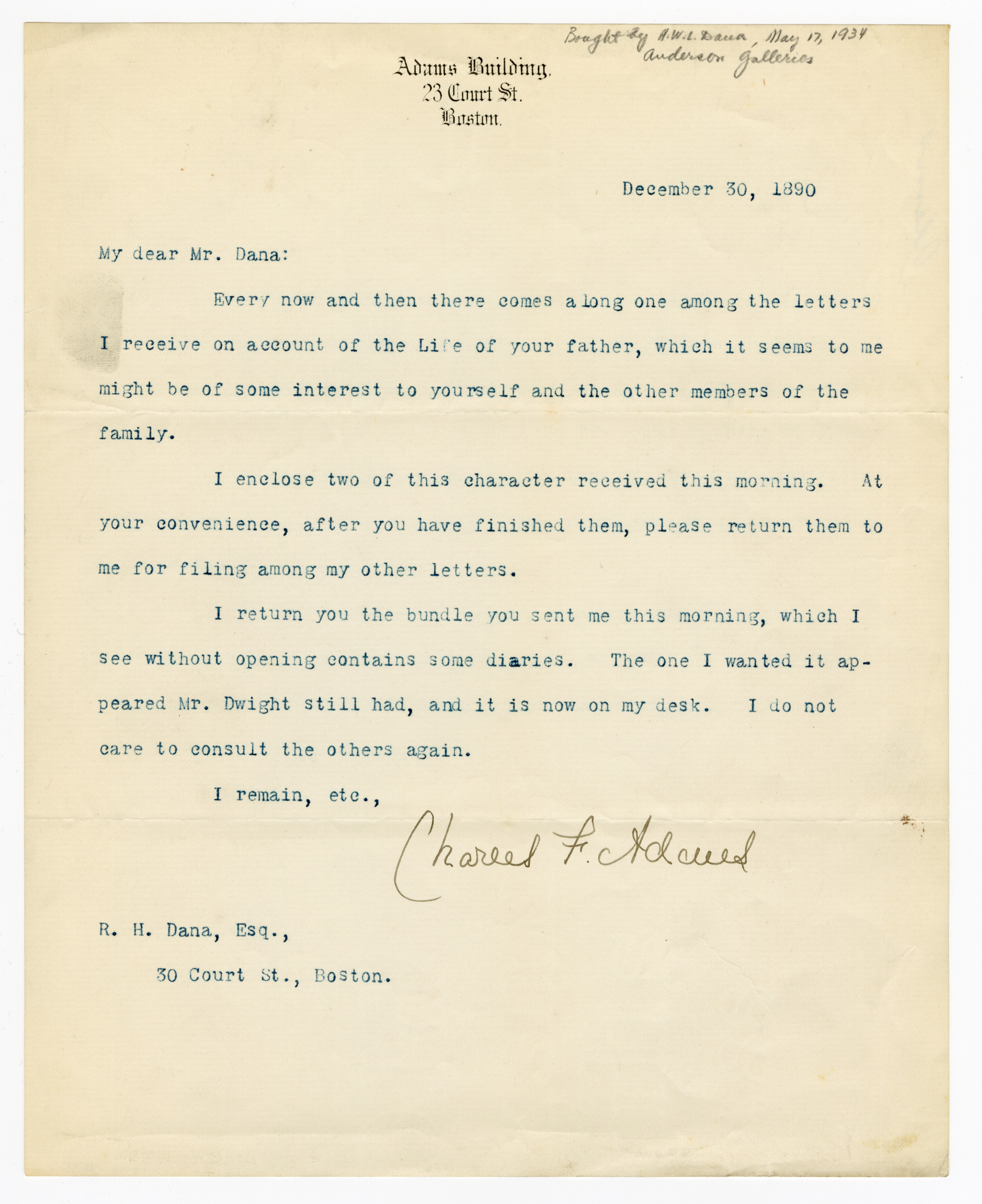 Charles Francis Adams Jr. to Richard Henry Dana III, 30 December 1890