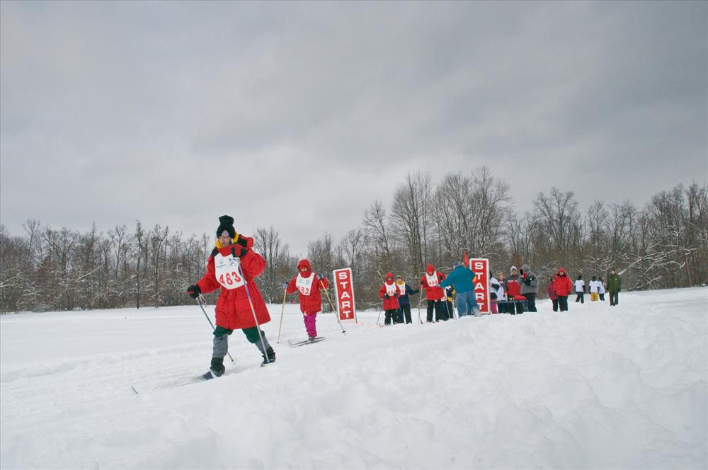 Images of cross-country ski events were taken in winter 2009 at the Ledges in Peninsula, Ohio. || Braving below-freezing temperatures and cold winter winds, Special Olympians from all over Ohio gathered at Cuyahoga Valley National Park to compete in winter sports. Special Olympics is an international organization dedicated to empowering individuals with intellectual disabilities to become productive, physically fit, and respected members of society through sports training and competition.