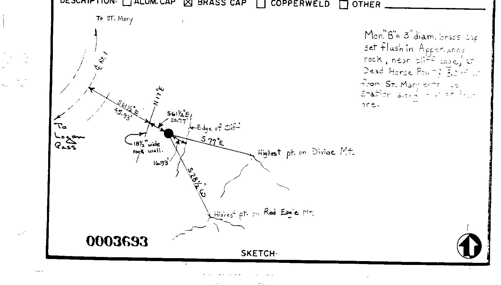 Survey monument record sheet, Sketch number: 00003693