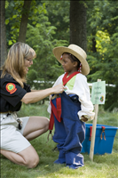 Cuyahoga Valley National Park (CVNP) and Cuyahoga Valley National Park Association present Get Up, Get Out & Go!, a campaign introducing recreational opportunities along the Ohio & Erie Canal Towpath Trail in Akron and the national park. The program targets residents in the urban neighborhoods surrounding the Towpath Trail in Akron which is a part of the larger Ohio & Erie Canalway, a national heritage area. Get Up, Get Out & Go! serves as an invitation for kids 11 to 14 years old and their families to give the Towpath Trail a try and to venture further along the trail into CVNP. || Youth do a historic costumes relay at the Get Up, Get Out, Go! kickoff event in June 2007.