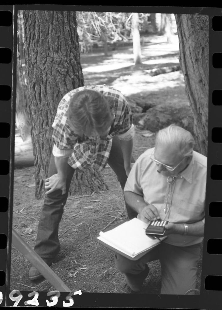 Marilyn Nishio, 760522, Grant Grove, KCNP, Grant Tree, Taking Measurement of Tree.