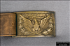 SWORD BELT. CIVIL WAR - UNION ARMY. 2 NARROW STRAPS WITH BRASS FITTINGS HANG FROM BELT. RECTANGULAR BRASS BELT BUCKLE HAS EAGLE WITH OUTSTRETCHED WINGS. EAGLE HAS BANNER WITH "E PLURIBUS UNUM."