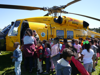 Visitors boarding a Navy helicopter at Miller Field