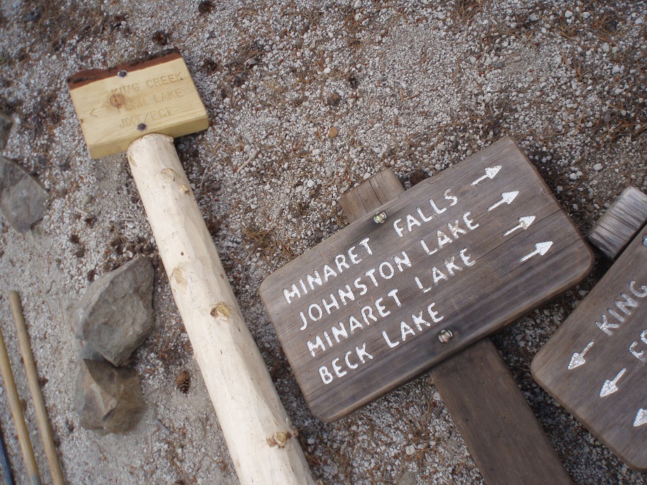 Installation of new trail signs after blowdown event. Signs made of all native material except for hardware.