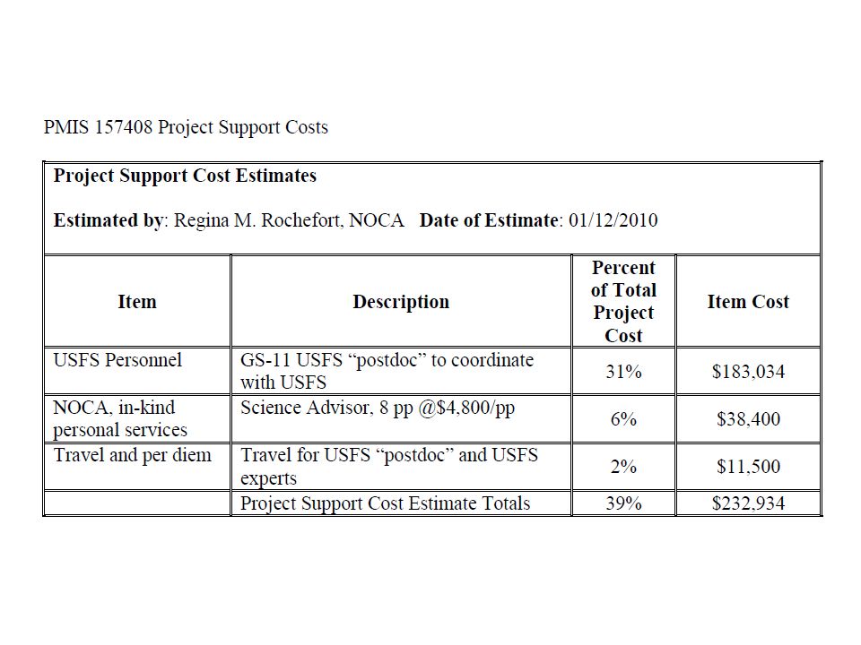 PMIS 157408 Project Support Costs