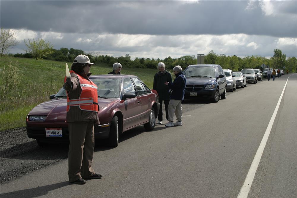At Cuyahoga Valley National Park volunteers perform a wide variety of duties during every season of the year. Currently over 2,021 volunteers donate over 70,195 hours to the park. || CUVA Crew volunteer assist with parking during a program at the former Coliseum site.
