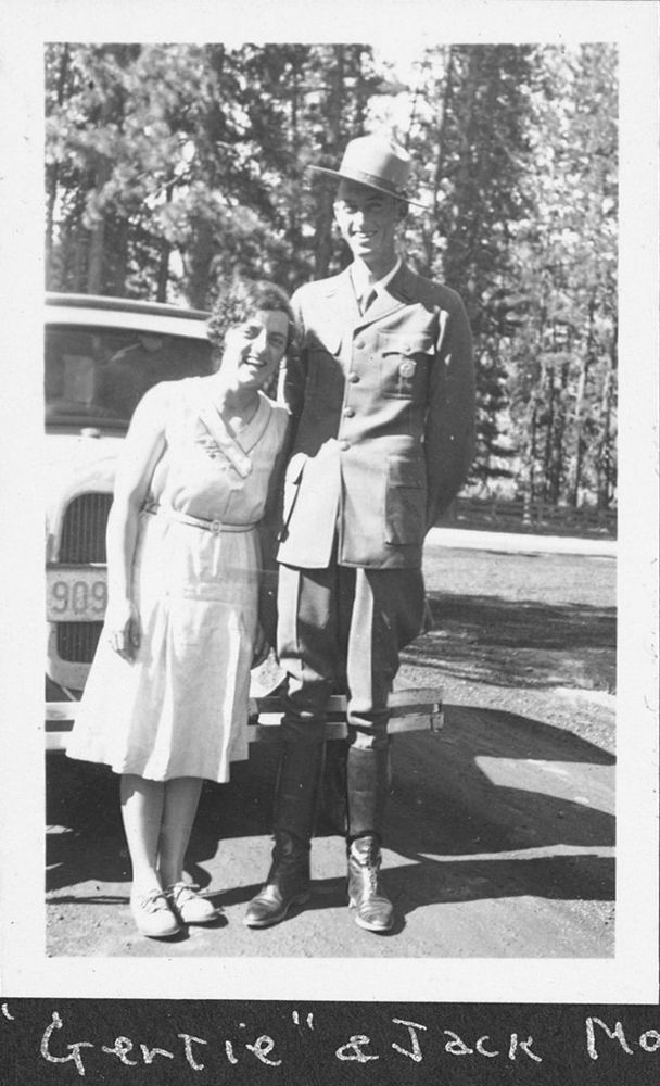 Arthur G. Holmes Collection: Album 2. Many events and displays celebrated Lassen Volcanic's Park Dedication Ceremony July 24,25,26 1931. "Gertie and Jack Moody- who helped during the festivities"