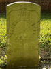 Front of historic upright marble headstone with recessed shield face.