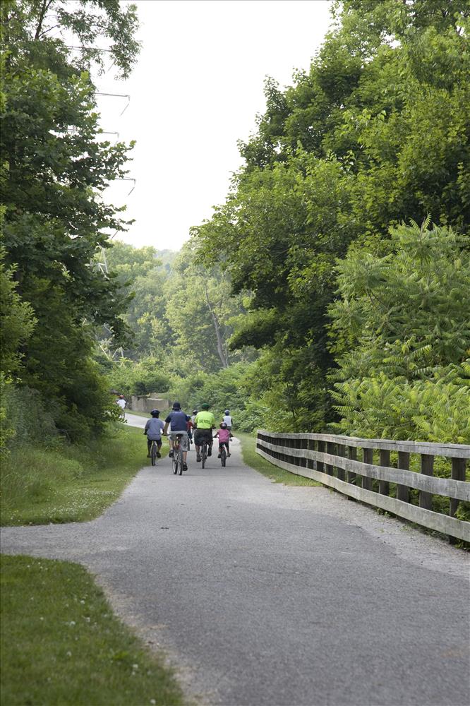 Cuyahoga Valley National Park (CVNP) and Cuyahoga Valley National Park Association present Get Up, Get Out & Go!, a campaign introducing recreational opportunities along the Ohio & Erie Canal Towpath Trail in Akron and the national park. The program targets residents in the urban neighborhoods surrounding the Towpath Trail in Akron which is a part of the larger Ohio & Erie Canalway, a national heritage area. Get Up, Get Out & Go! serves as an invitation for kids 11 to 14 years old and their families to give the Towpath Trail a try and to venture further along the trail into CVNP. || Youth bicycle on the Towpath Trail during the Get Up, Get Out, Go! kickoff event in June 2007. The group is lead by Metroparks Serving Summit County staff.