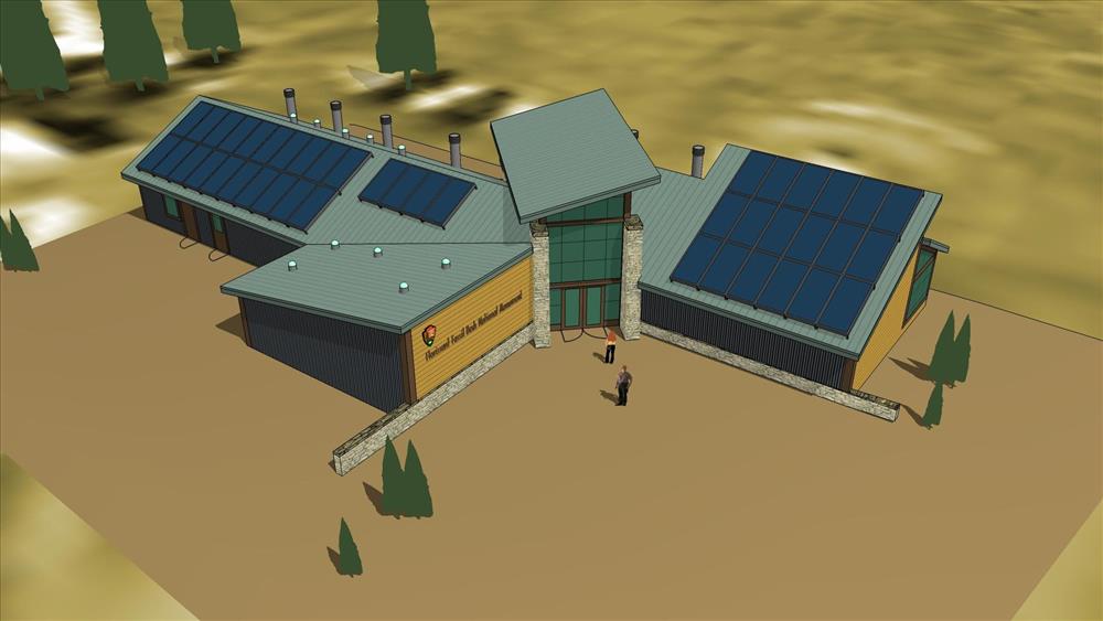 Temporaty Visitor Center images at FLFO documenting that salvaged materials were used in the costruction of the building, supporting the need for ne Visitor Education Research and Museum Facility (VERMF)