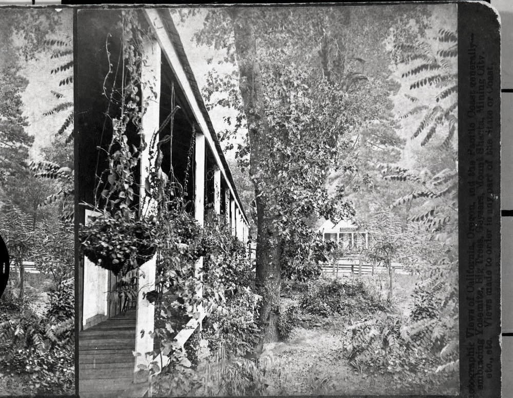 Detail of RL-16,490. Caption: "View from the Cosmopolitan. Yosemite Valley, Mariposa, Cal. 3025." Sign on distant building: "Stegman & Son." Copy Neg: July 1985 by Michael Dixon