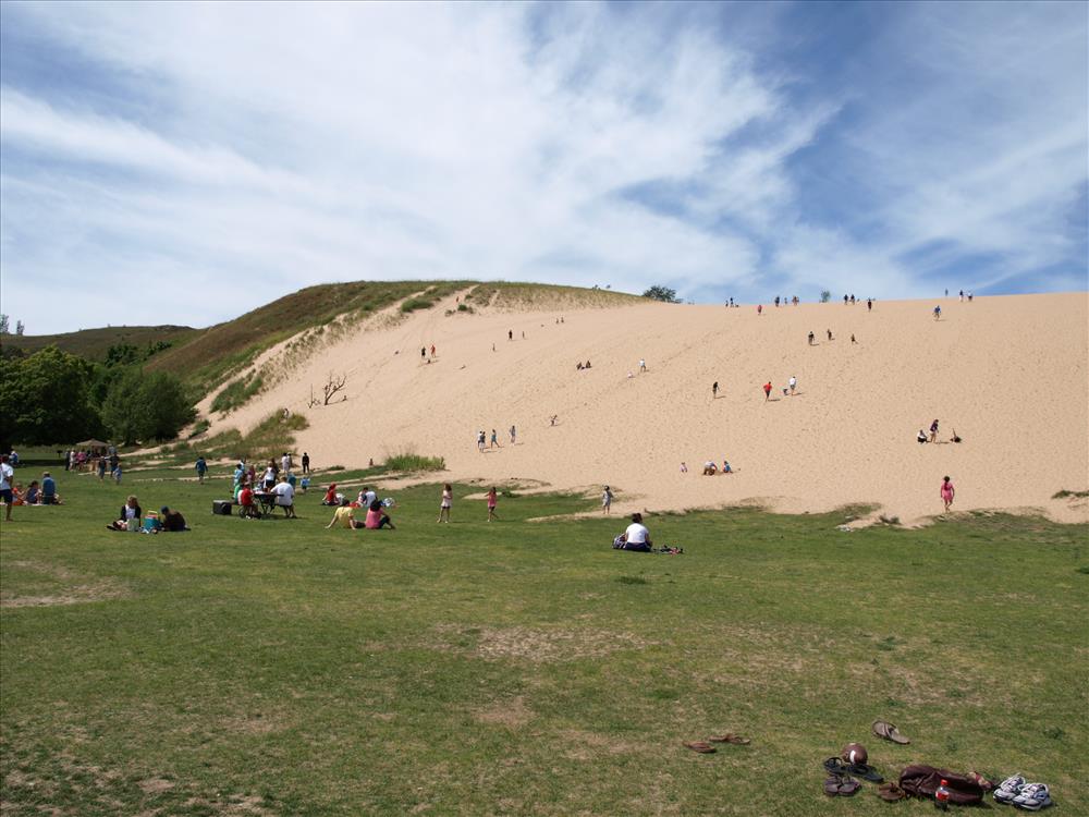 Visitors climbing the sand dunes at the Dune Climb