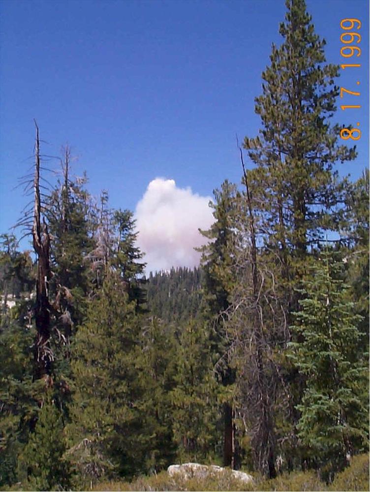Distance views of smoke from the LeConte wildland fire, August 17, 1999, Yosemite National Park