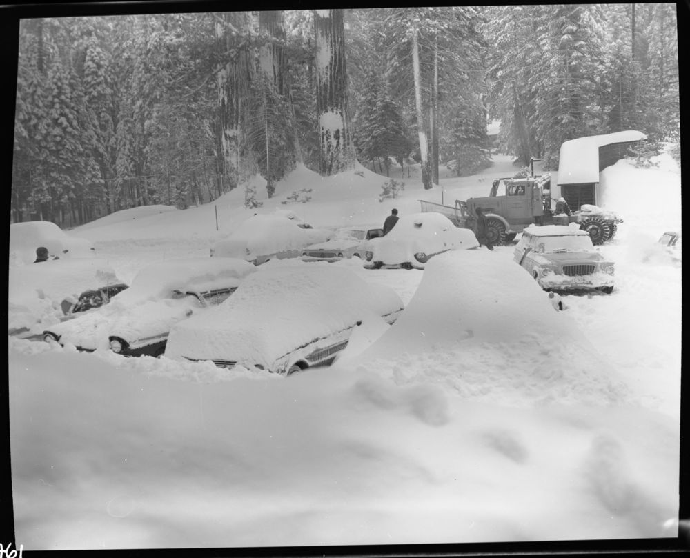 Unknown Photographer, 650000, Giant Forest, SNP, Winter Scenes, Giant Forest Village in snow. Concessioner Facilities. Vehicular use.