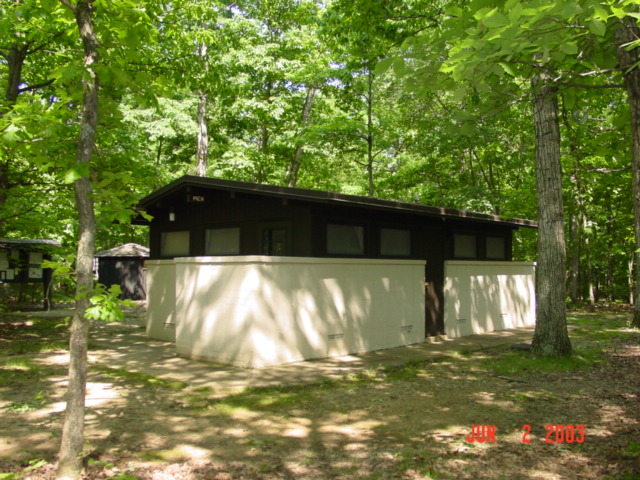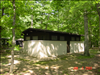 Exterior of A-unit and C-unit Oak Ridge comfort stations in Prince William Forest Park.