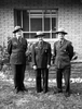 Rangers in uniform standing with Rudy Lueck (third from left) and Carl E. Jepson (second from right) outside Mission 66 Visitor Center and Museum and headquarters. Superintendent Warren F. Hamilton at far right. ; ZION Museum and Archives Image ZION 9549 ;