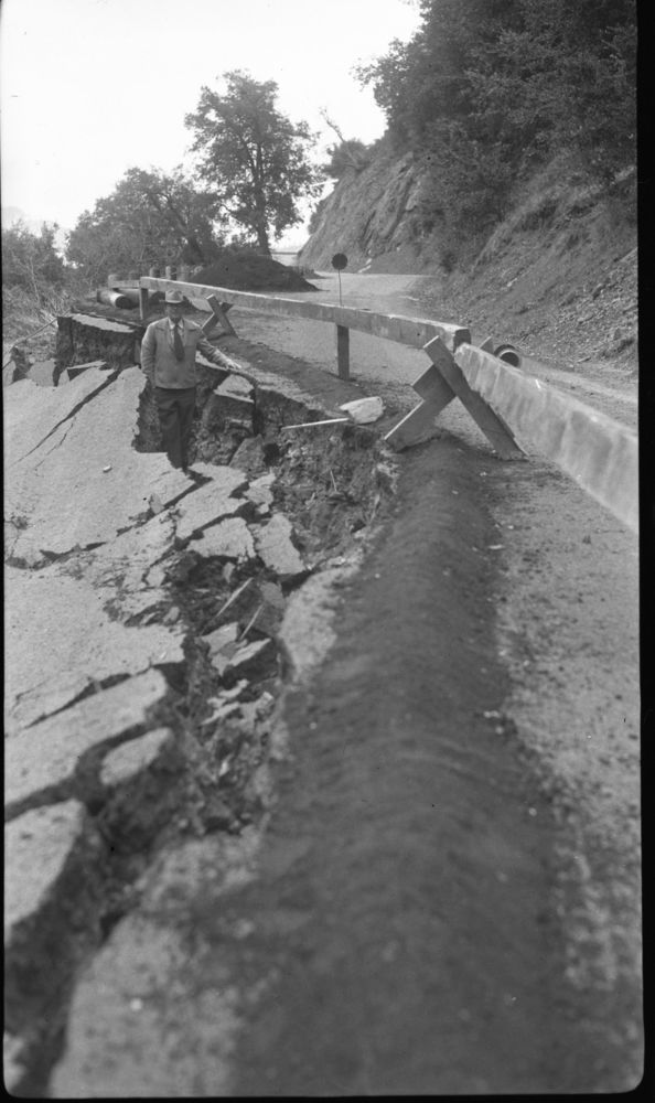 Floods and Storm Damage, slide on Generals Highway. Individuals unidentified.