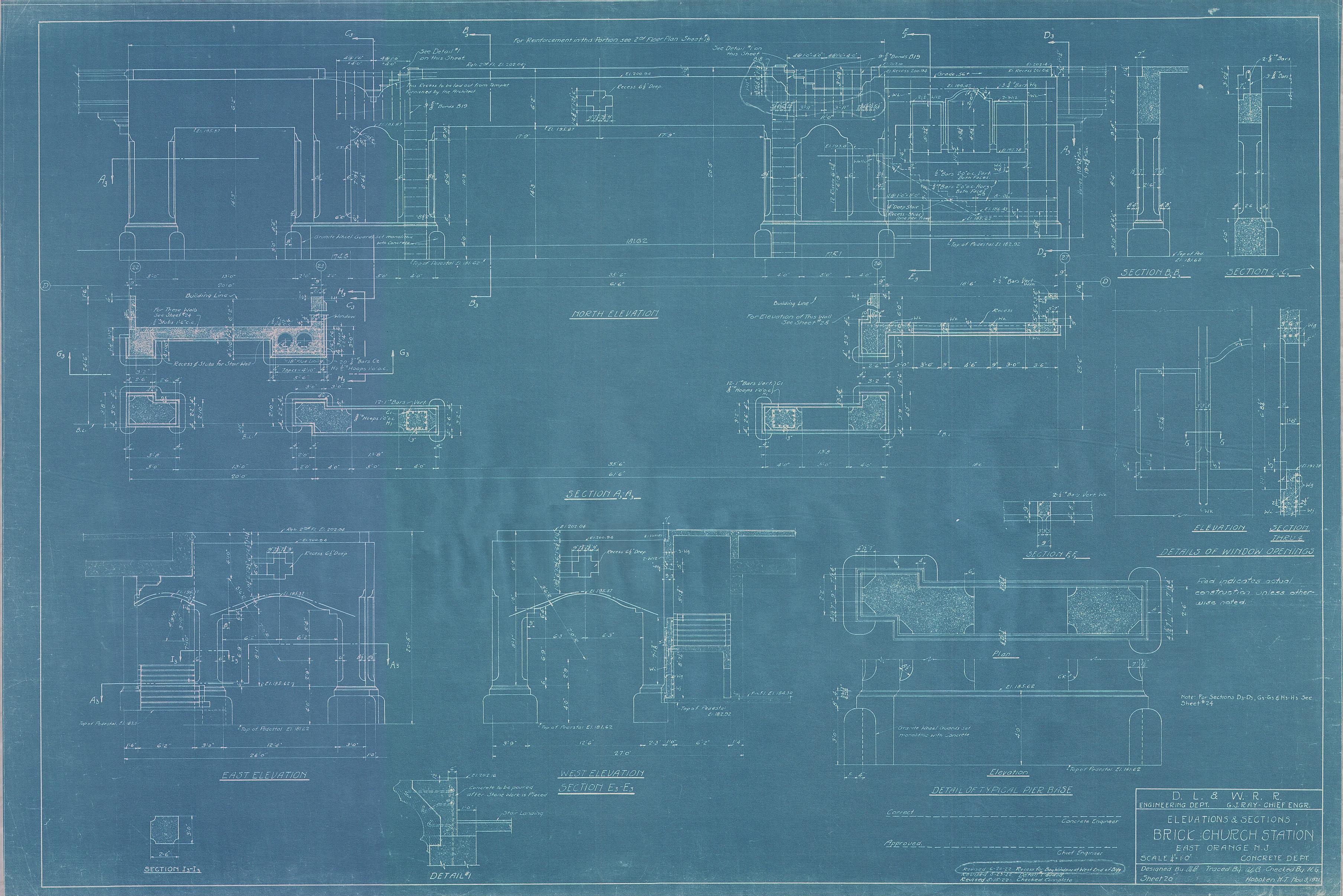 020 Brick Church Station--Station elevations and sections--East Orange, NJ [1921.11.08] Sheet no. 20