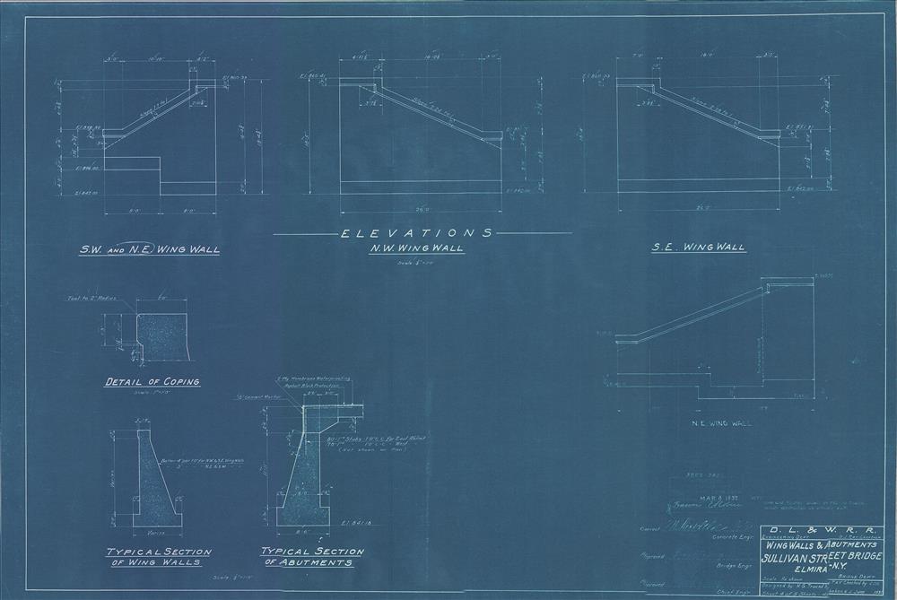 Sullivan Street Bridge--Wing walls and abutments--Elmira, NY [1931.06] Sheet no. 4 of 5