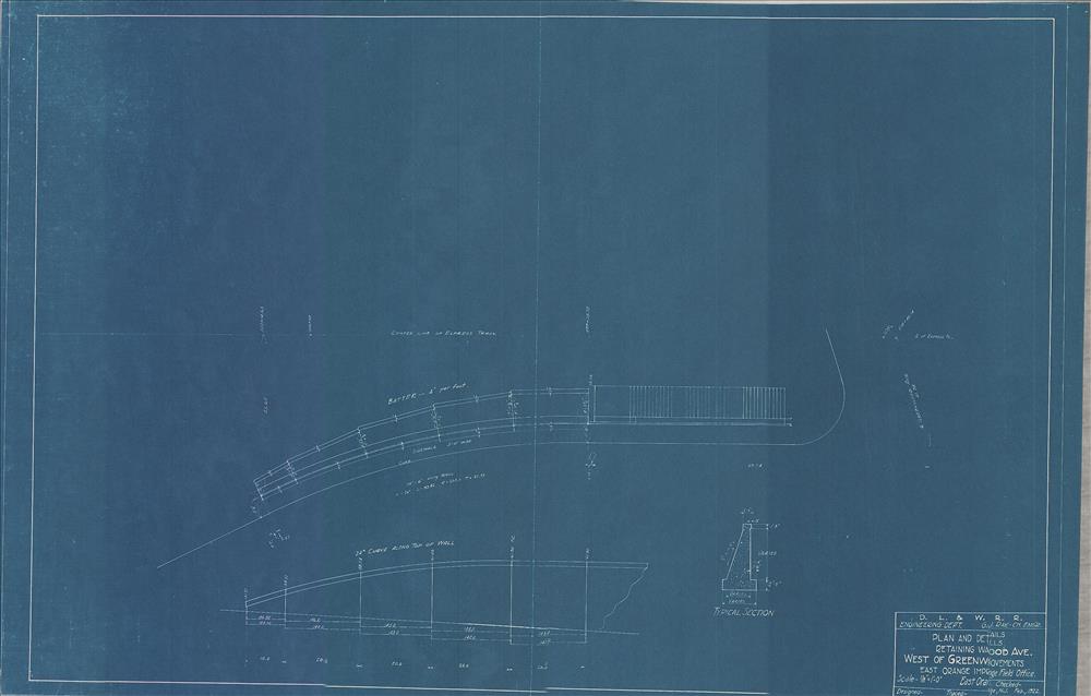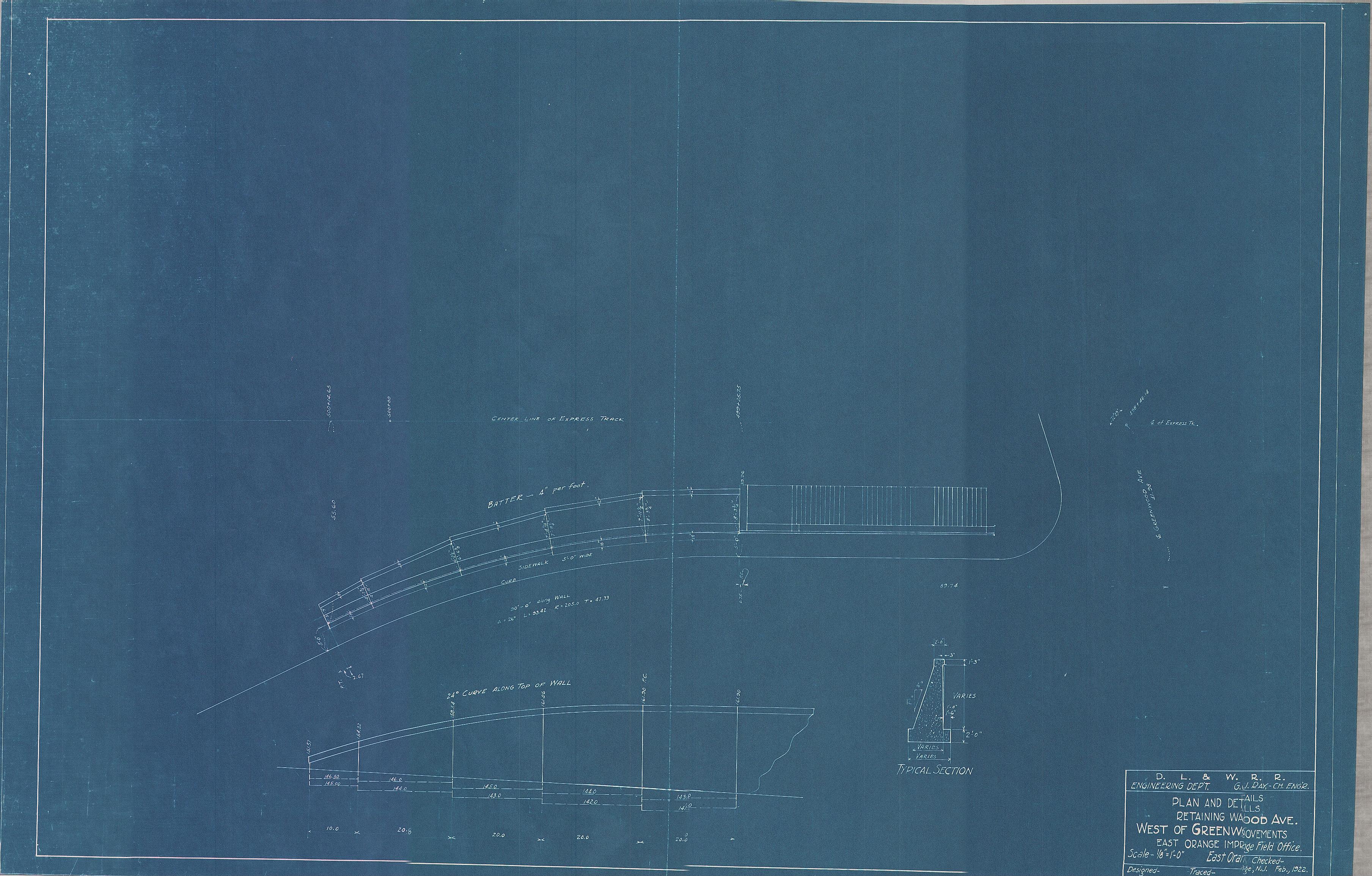 021 East Orange Improvements--Plan and details of retaining walls west of Greenwood Avenue--East Orange, NJ [1922.02]