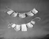 Private Collection. Object: Miwok abalone shell pieces. Dimensions: largest 4 1/2 x 4", smallest 2 1/2 x 2" two are pentagonal, rest rectangular. Technology: 10 intact pendants, one fragment of finished pendant, & remainder 16 pieces of abalone shell, most