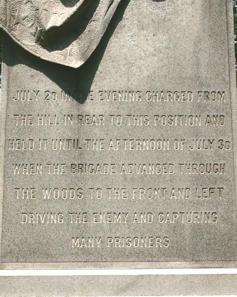 Marks position of 2nd Pennsylavania Reserves on July 2, 1863 after counterattack on advancing Confederates. 1 of 110 mns in Park to PA commands at Gettyburg. Located on E side of Ayres Ave on E edge of Wheatfield. || Mn & 2 flank markers. Rough hewn base, 5' sq. Shaft, 3' sq. Apex-cap topped w/ draped flag & V Corps Maltese Cross. All 9'3" high. Flank markers, apex topped, 1'x1'x8".