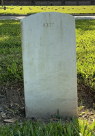Headstone at Chalmette National Cemetery. Grave ID: 8327. Located at Section 100, Row 2, Site Number 7. Photo taken as part of the 2024 condition assessment and inventory.