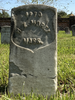 Front of historic upright marble headstone with recessed shield face.