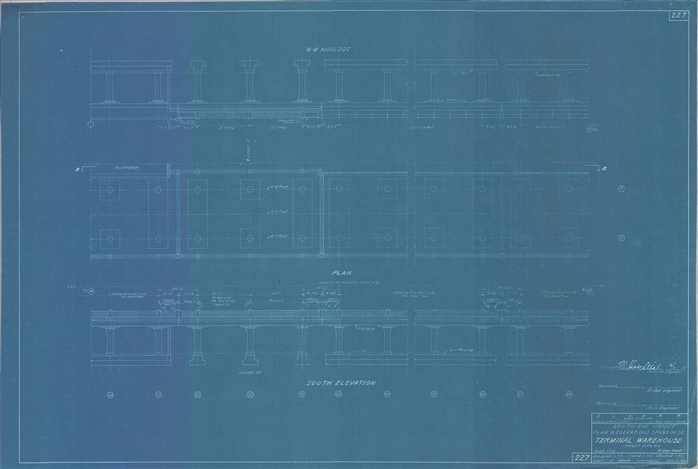 027 Terminal Warehouse--South side Viaduct plan and elevations, spans 34 to 52--Jersey City, NJ [1929.06.21] Sheet no. 227