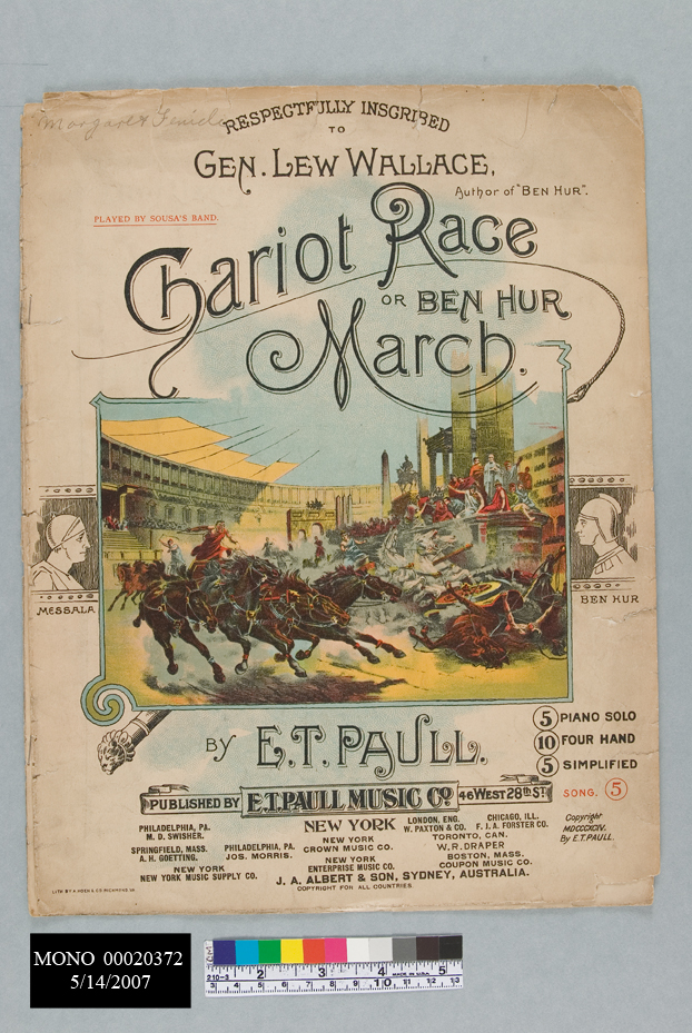 1894 Sheet Music to Ben Hur, donated by David Finch