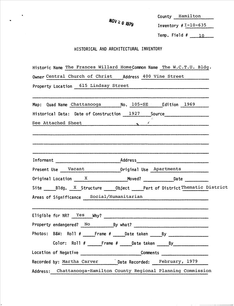 Chattanooga ; 615 Lindsay St.