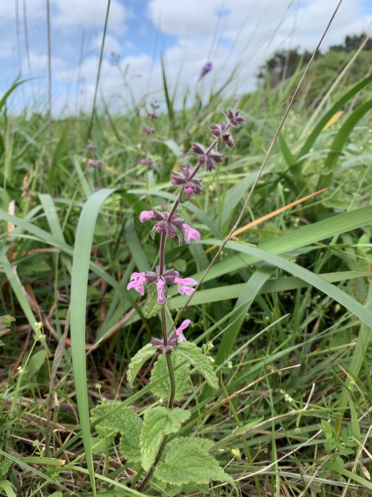 Rough hedgenettle blooming along Sacramento Landing Road on April 20, 2020.