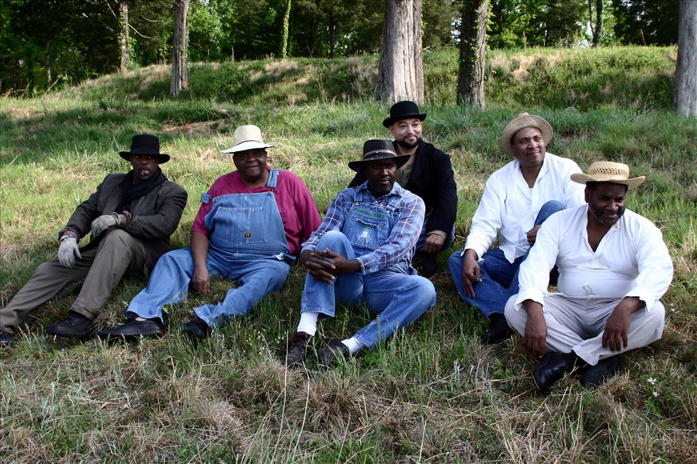 Civil War interpreters of men training to join the U.S. Colored Troops at Stones River National Battlefield, April 2004