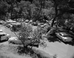 Visitor use, Zion Lodge - parked cars at cabin area of lodge, 7:30 a.m., September 3, 1961, Labor Day Weekend. ; ZION Museum and Archives Image ZION 9210 ; ZION 9210